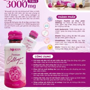 “Đừng để thời gian làm phai mờ vẻ đẹp của bạn. Hãy để Premium Collagen 5 in 1 3000mg giúp bạn lưu giữ thanh xuân, tỏa sáng rạng ngời!”